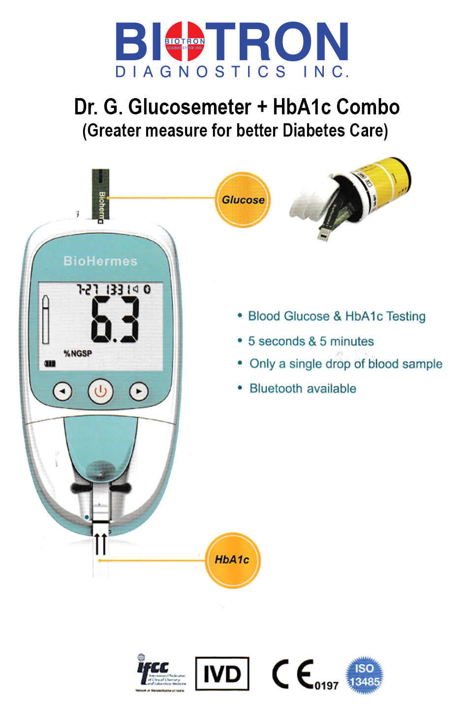 Biotron Diagnostics develops, produces, provides OEM services and distributes high quality and low cost in vitro diagnostics kits and reagents for Clinical Chemistry (Routine and Research chemistries - similar to Sigma and ultra-sensitive Sickle Cell Kits & Controls), Immunochemistry (ELISA/CLIA), Urinalysis, Serology ,Fertility ( Pregnancy and Male Sperm), Coagulation, Blood Banking, Rapid Diagnostics, Drug Screening, Biomarkers (Tumor Markers and Cardiac Tests), Infectious Diseases Rapid Tests (Export only), Bulk Clinical Chemistry & Coagulation Reagents for Instruments, Calibrators, Controls & Standards, Diabetes (Dr. G Glucosemeter & Test Strips), Hematology (Buffers & Reagents), Microbiology (Media, Stains and Reagents), Histology and Cytology (Buffers & Reagents), Veterinary test kits and Petnostics and Molecular Diagnostics (Genomics) Innovated Gene Testing Assays for Cancer and Infectious Diseases.